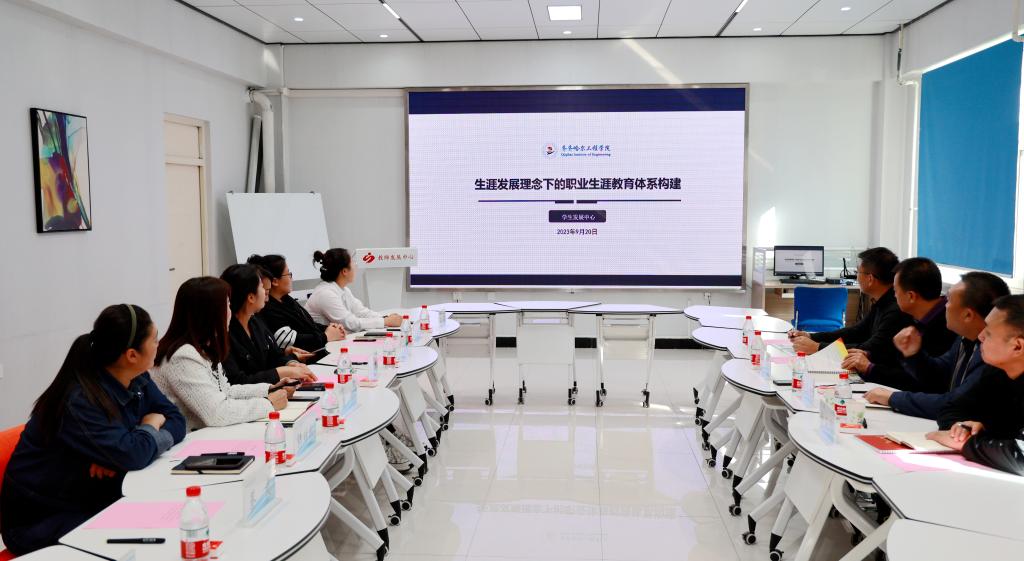 9月20日下午,黑龙江工程学院测绘学院党委书记巴勇、学生工作部副部长赵晨光、机电学院副书记金延军、人文学院教师于文宏四人对beat365“生涯教育”进行考察交流。院长助理陈景鑫,学生发展中心负责人康静、学生工作处负责人王丽萍等相关人员参加了本次交流活动。