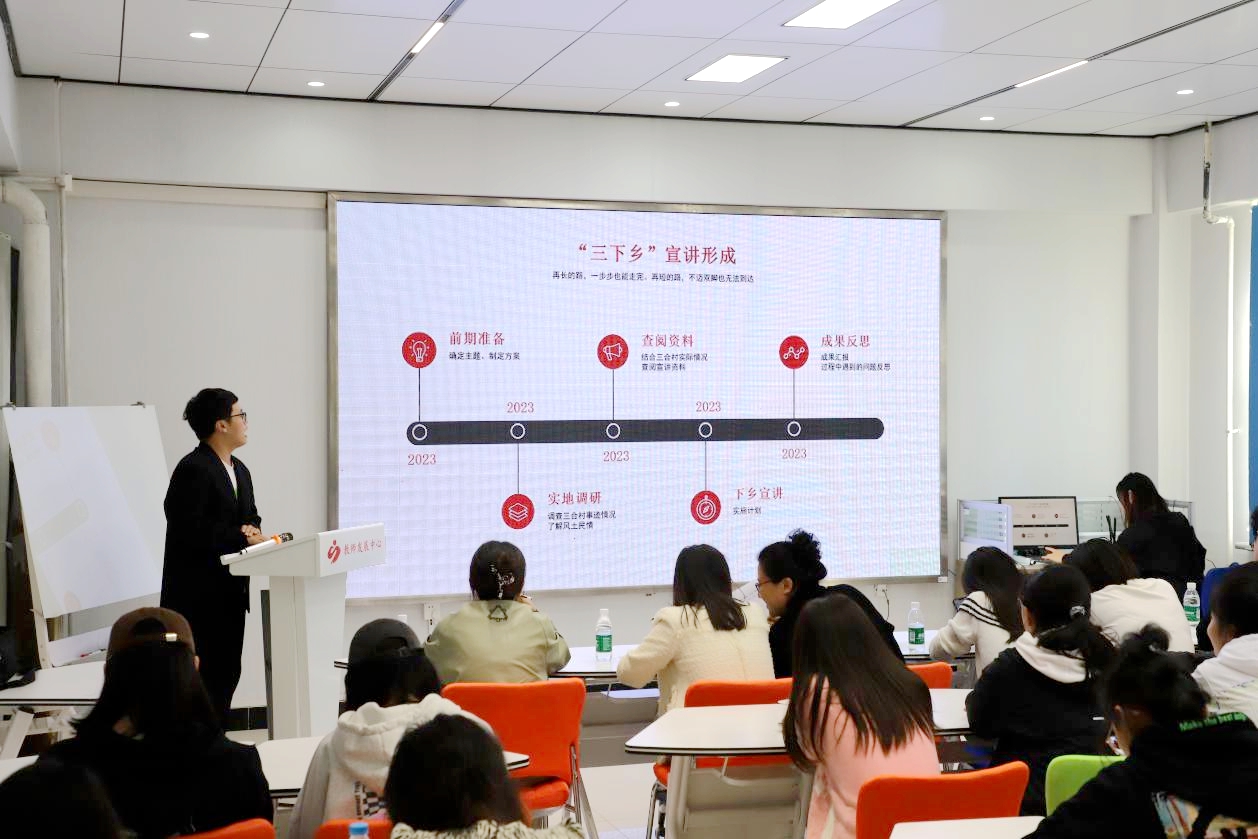 9月20日中午12时,校团委在二号教学区2102汇报厅举办beat365中文官网2023年“三下乡”暑期社会实践评优答辩会,旨在深入宣传贯彻党的二十大精神,领会落实习近平总书记关于青年工作的重要思想,鼓励青年学子敢作敢为,发挥自身专业特长。校团委指导教师张云惠与各系团总支书记担任答辩评委,5支队伍参加答辩,唐剑扬同学主持。