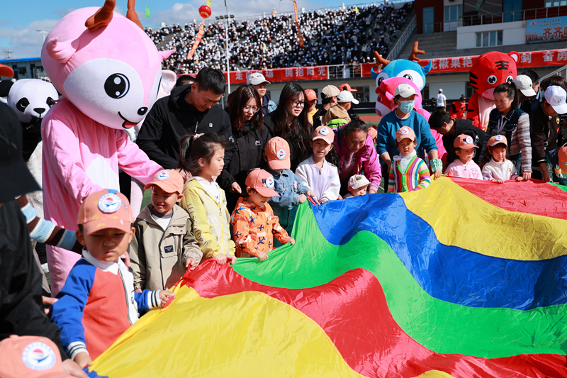 在吉祥的彩虹伞下,孩子们欢呼雀跃,积极投入到温馨有爱,有趣又互动性强的亲子运动中,大家的欢笑声此起彼伏,让陪伴孩子游戏的家长们也仿佛找到自己欢乐的童年。
