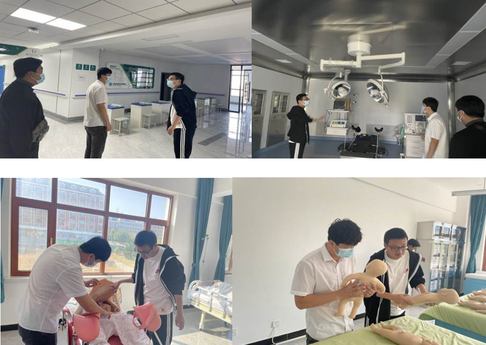 在翟德宇的带领下,单大海等人参观了校医院、基础护理实训室、妇产科护理实训室、健康评估实训室等多个实训室,了解实训室环境、实训课开展的实训项目,随后进班听课,了解学生的听课状态。