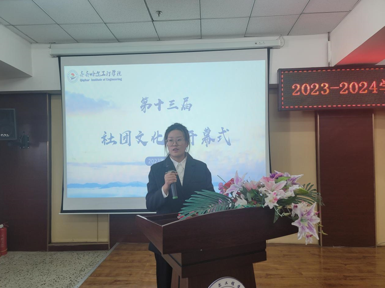 团委副书记王雪老师宣读《关于举办第十三届社团文化节通知》,并鼓励各位社团负责人,积极参与社团活动,提高自身综合素质,希望社团能通过此次文化节展示出各社团的风采和实力。