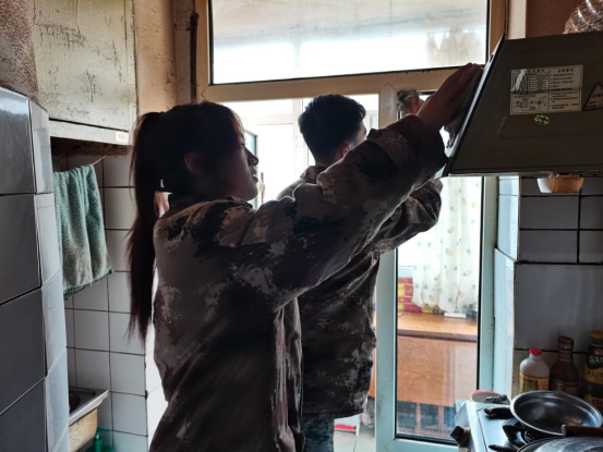助老分队还帮助老人家里清洁门窗玻璃、整理清扫房屋,让他们在温馨的环境中度过一个有温度的重阳节。