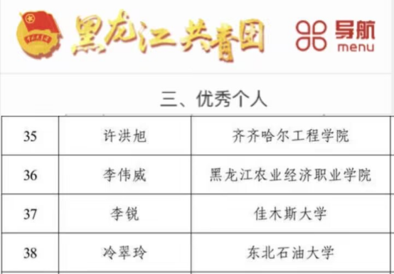 近日,团省委对2023年度黑龙江省大中专学生志愿者暑期“三下乡”社会实践活动中的优秀典型进行公示表彰,校团委获评“优秀单位”,管理工程系营销201班许洪旭同学获评“优秀个人”。