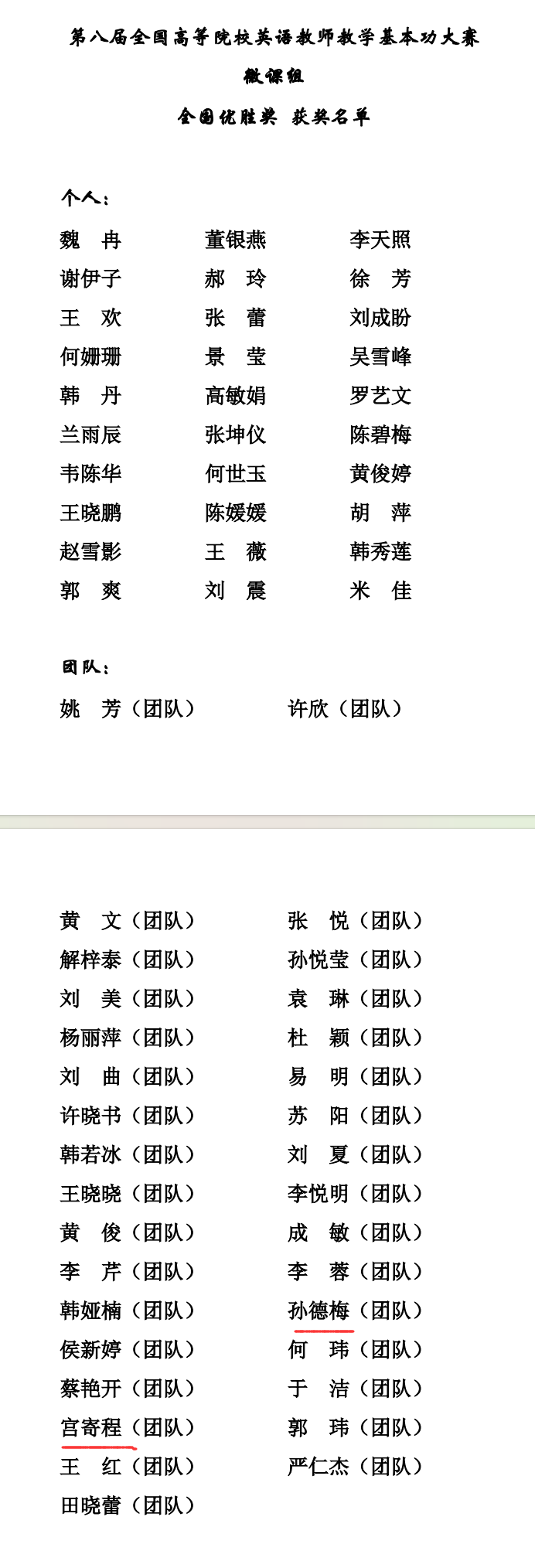 近日,外研社“教学之星”大赛黑龙江赛区(本科英语组)大赛和第八届全国高等院校英语教师教学基本功大赛中,beat365基础部大学外语教研室教师喜获佳绩。