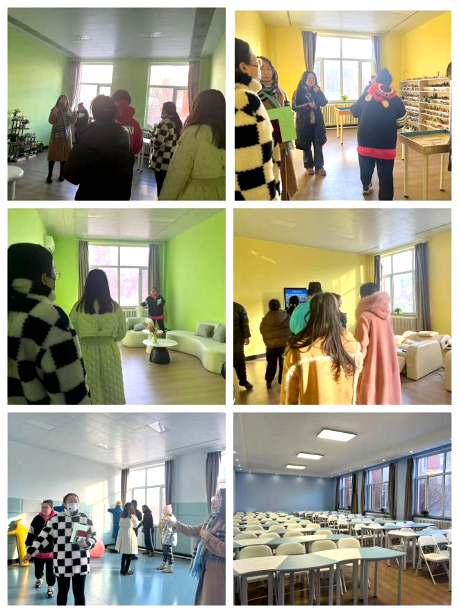 讲座结束后,两位老师带领辅导员们参观了心理咨询室、团体辅导室、预约接待室、团体活动室、沙盘游戏室、情绪宣泄室、音乐放松室。