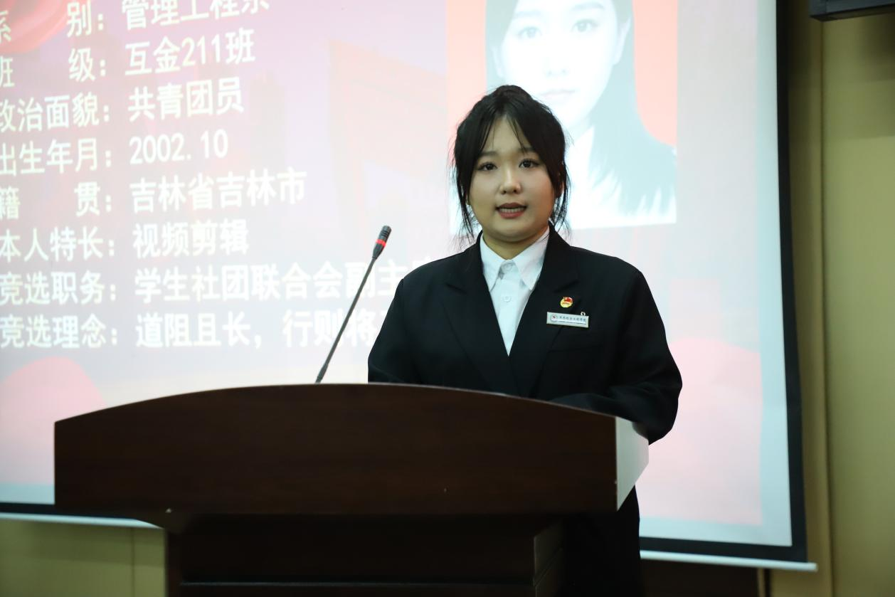 经选举,潘昊同学当选第十三届学生社团联合会主席;刘浩东、姜躍同学当选第十三届学生社团联合会副主席;郭洳彤、单思远、初雨蒙、王鑫、于嘉、宋鑫宇同学当选学生社团联合会委员。
