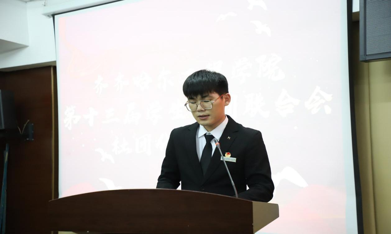 第十二届学生社团联合会主席李海澎作工作报告,他回顾了学生社团工作在思想塑造,精准服务,特色定位,活力维系等方面取得的成绩,对未来社团的工作进行了展望。
