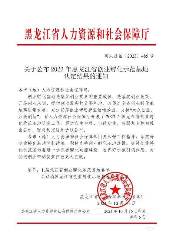 今年8月份,由市人力资源与社会保障局牵头组织市各孵化载体开展黑龙江省创业孵化示范基地评审工作,9月份省人力资源与社会保障厅领导莅临学校科技园进行实地考察,考察组对学校创业孵化载体与大学生创新创业实践基地给予了充分肯定。经过材料审查、实地审查、公示评议等相关程序后,最终获批省级创业孵化示范基地,成为我省29家创业孵化示范基地的一员,其中高等院校单位仅有3家。