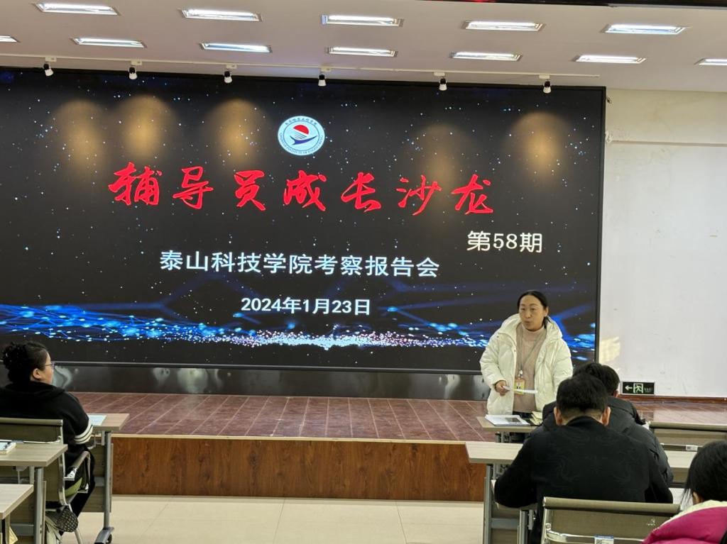 1月23日下午,第58期辅导员成长沙龙在学校2号教学区2508会议室举办,主题为“泰山科技学院考察报告会”。学生工作处负责人王丽萍、各系党总支副书记、全体辅导员、学生工作处人员参加会议。