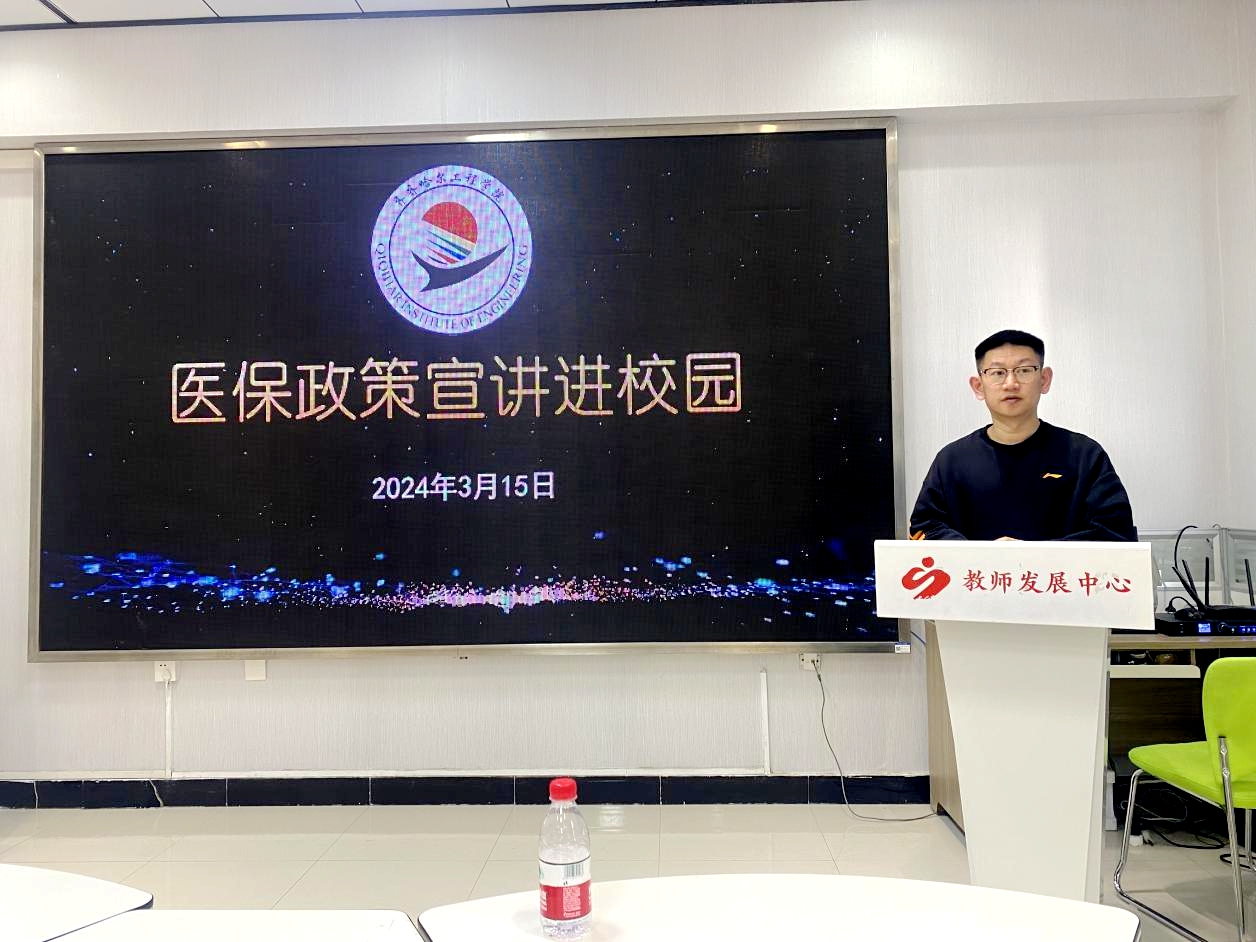 3月15日上午,学生工作处在二号教学区2102教室与齐齐哈尔市医保局联合开展医保政策宣讲进校园活动。市医保局龙沙分中心许歆主讲,学生工作处王睿老师主持活动,市医保局征缴科科长李冰、个体科科长王文琦、学生工作处负责人王丽萍及学校全体学工教师参加。