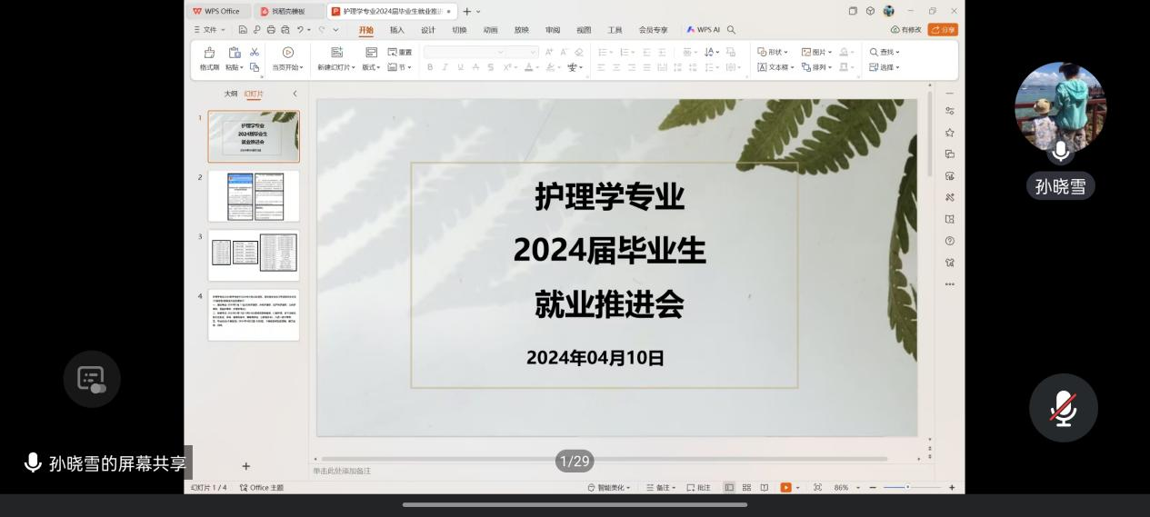 4月10日,健康与护理系护理学专业召开2024届毕业生就业工作推进会议,护理学专业负责人孙晓雪主持,辅导员杨嘉琪及护理学2024届全体毕业生参加。