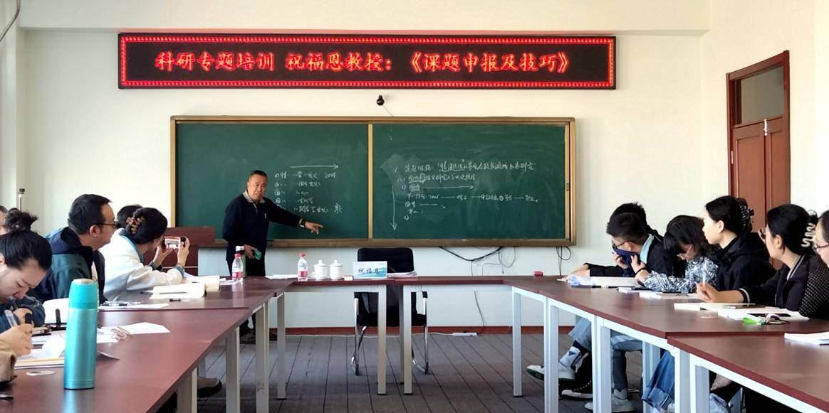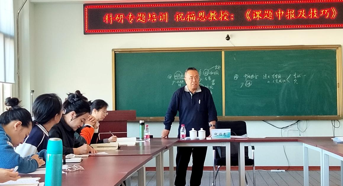 4月19日上午,学校科研处在图书馆608会议室举办《课题申报及技巧》专题讲座。学校马克思主义学院顾问、哈尔滨工程大学马克思主义学院教授、博士生导师祝福恩应邀担任主讲,学校50余名相关专业教师现场聆听讲座。科研处副处长张平主持活动。
