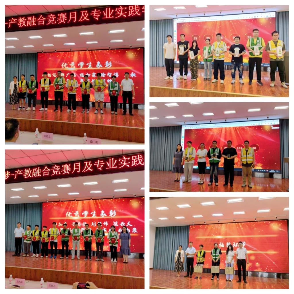与会领导为产教融合系列竞赛及专业实践学期表现优秀的学生颁奖。
