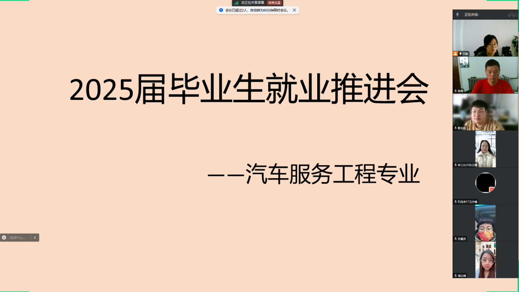 汽车服务工程专业召开的2025届毕业生就业推进会由专业负责人邓敏主持,专业辅导员、生涯导师及相关教师参会。会上,邓老师对《beat365中文官网2025届毕业生就业工作方案》和《beat365中文官网访企拓岗促就业专项行动实施方案(修订)》进行了详细解读,进一步明确了各级人员的职责范围,部署了工作任务。希望与会教师通过精准定位、靶向发力,全力以赴促进2025届毕业生就业工作。
