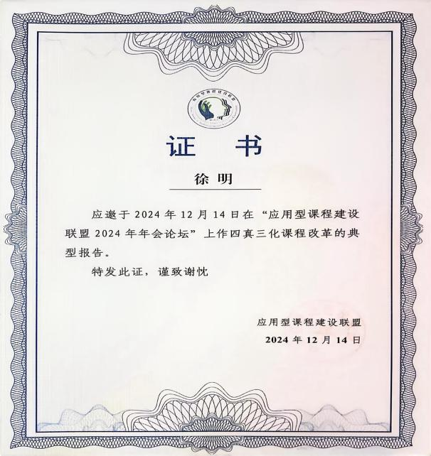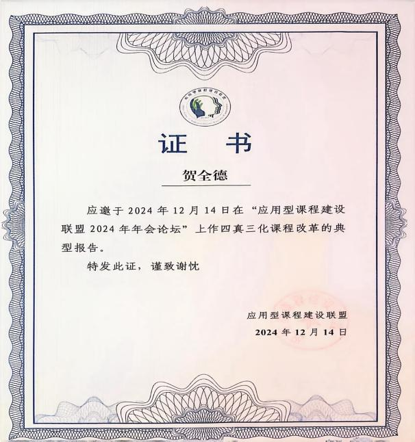 12月13日,建筑管理工程系党总支书记、主任徐明,建筑管理工程系副主任贺全德应邀参加在深圳召开的应用型课程建设联盟2024年论坛,并在会上做典型报告,同时,建筑管理工程系互联网金融教研室获2024年应用型课程建设创新团队奖。