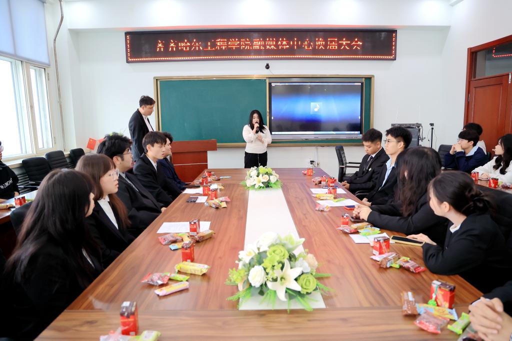 张苗代表学校,向顺利完成任期工作的上一届融媒体中心成员表示衷心的感谢,向新一届成员表示热烈的祝贺。张苗指出,自融媒体中心成立以来,同学们在学校宣传工作中发挥了重要作用,各部门各司其职,全方位打造优质校园宣传内容,提升校园宣传影响力。对于新一届融媒体中心成员,她提出三点希望:一是要提高政治站位,坚持正确的舆论导向。宣传工作是学校意识形态工作的重要阵地,要始终与党和学校同心同向,传播正能量,弘扬主旋律。二是要不断创新形式,提升传播力和影响力。紧跟时代步伐,善于运用新技术、新手段,推出更多有深度、有温度、有高度的融媒体作品,讲好校园故事,展现学校特色。三是要加强团队协作,凝聚工作合力。融媒体中心是一个有机整体,各部门要相互配合、相互支持,在合作中提升能力,在协作中增进友谊。希望同学们以此次换届为新的起点,传承优良传统,勇于担当作为,以更加饱满的热情、更加昂扬的斗志投入到工作中,推动学校宣传工作再上新台阶,为学校高质量发展营造良好的舆论氛围!