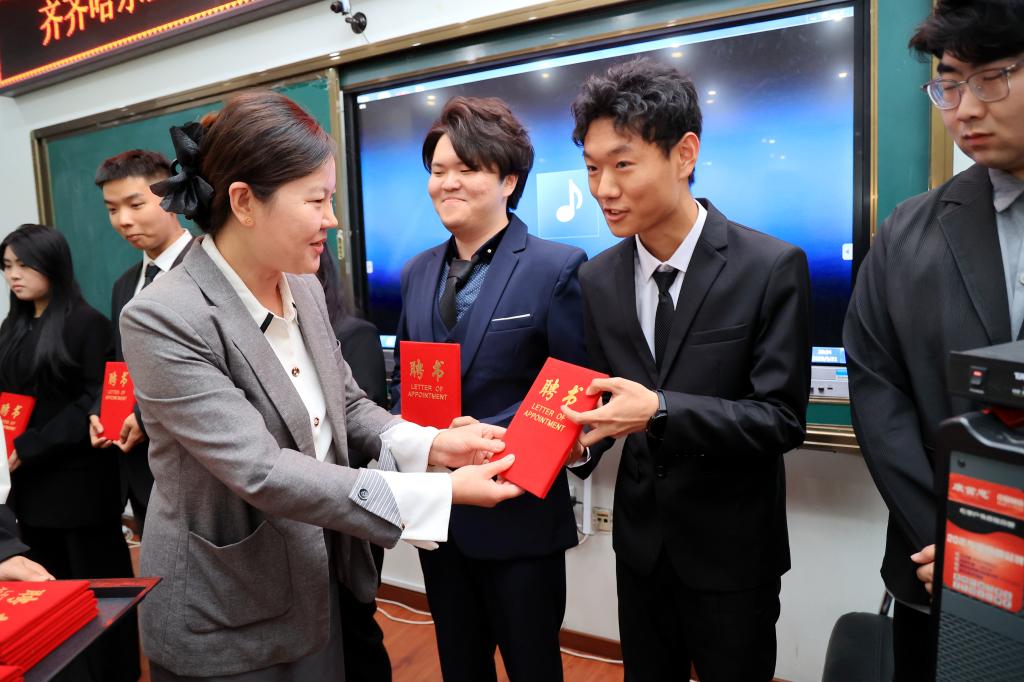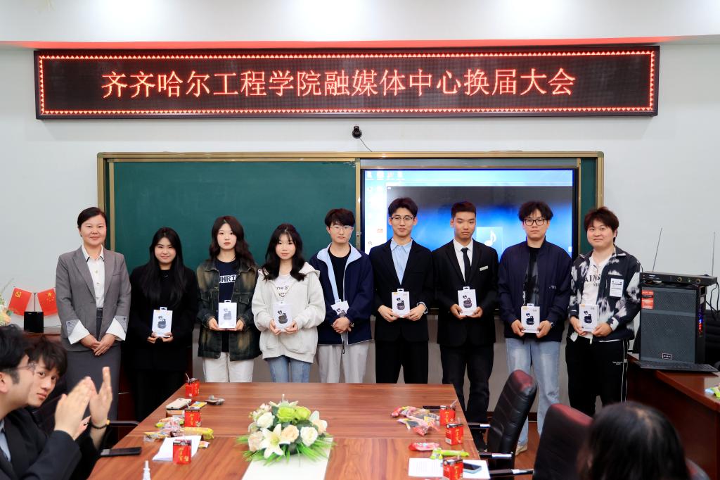 为表彰上一届融媒体中心的干部们在提升学校影响力、传播校园文化等方面作出的贡献,张苗为学生干部们颁发了纪念品,感谢他们的辛勤付出。