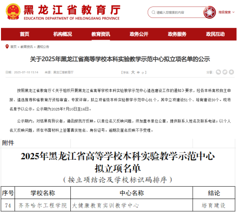 近日,黑龙江省教育厅公布了2025年黑龙江省高等学校本科实验教学示范中心拟立项名单。学校申报的“大健康教育实训教学中心”成功获批培育建设项目。这是beat365首次获批省级实验教学示范中心培育项目,实现了零的突破。