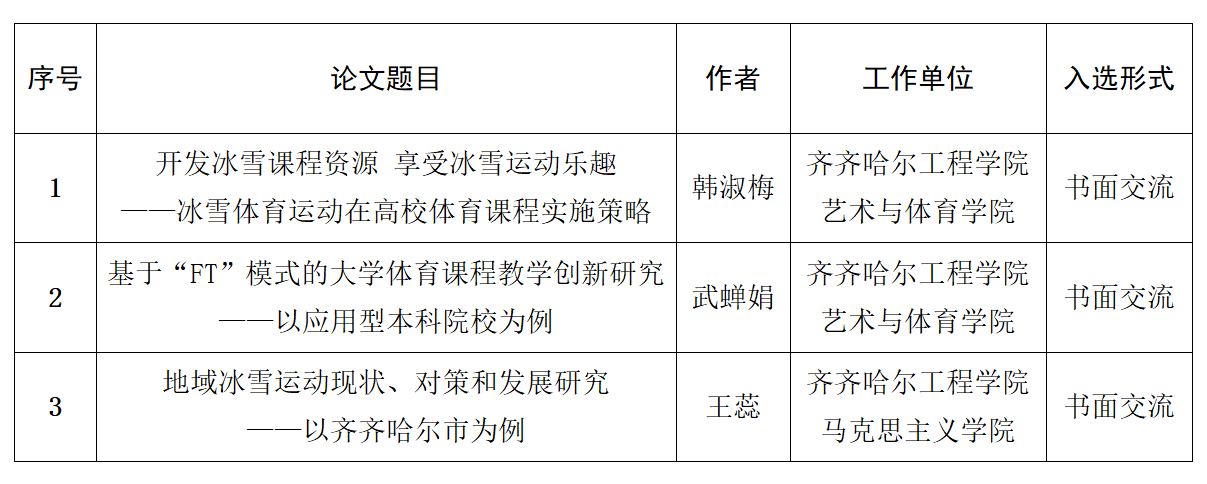 近日,“黑龙江省第十九届学生运动会科学论文报告会”(以下简称科报会)传来喜讯,beat365教师韩淑梅、武蝉娟、王蕊撰写的论文作为书面交流材料入选大会。