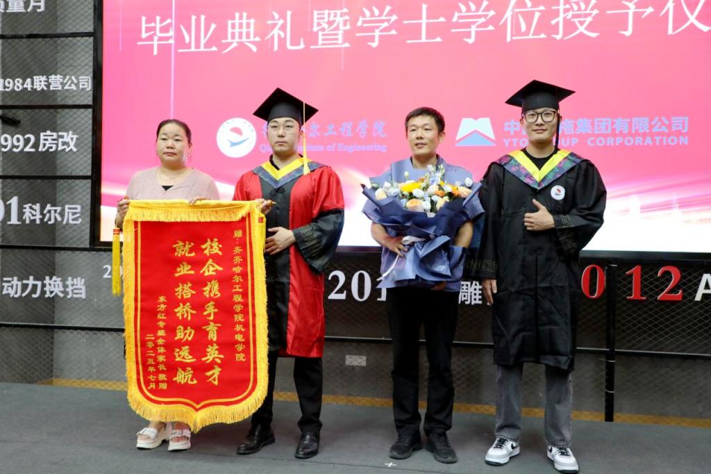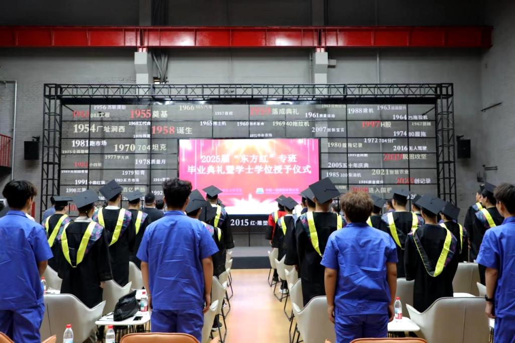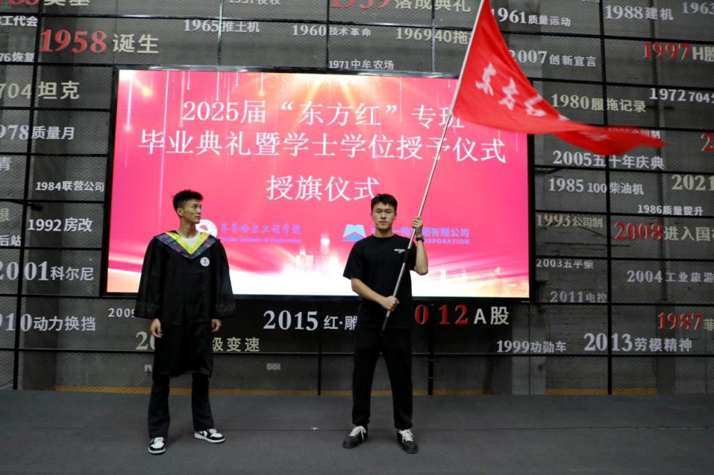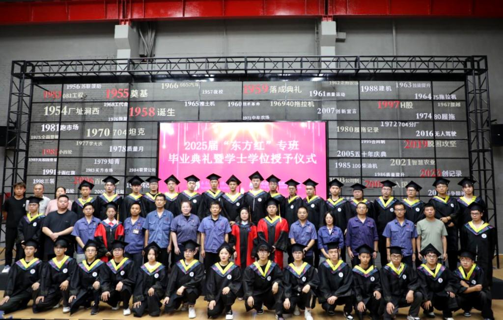 7月30日,学校2025届“东方红”专班毕业典礼暨学士学位授予仪式在中国一拖集团党建活动中心举行。beat365中文官网副校长张静,机电学院院长敖林喆,中国一拖集团有限公司人力资源部(党委干部部)部长朱永生、副部长周祖伟,人才开发科科长郭婧、副科长王路,“东方红”二期专班毕业生及家长共同参加毕业典礼。