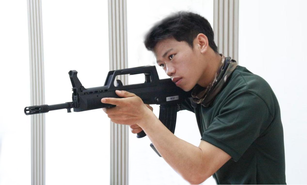 在射靶体验现场,退役大学生们身姿挺拔,眼神锐利,举枪时稳如磐石,瞄准瞬间屏息凝神,扣动扳机干脆利落 —— 整套流程一气呵成,仿佛昨日的训练场景在眼前重现,过硬的军事素养引得现场阵阵掌声。