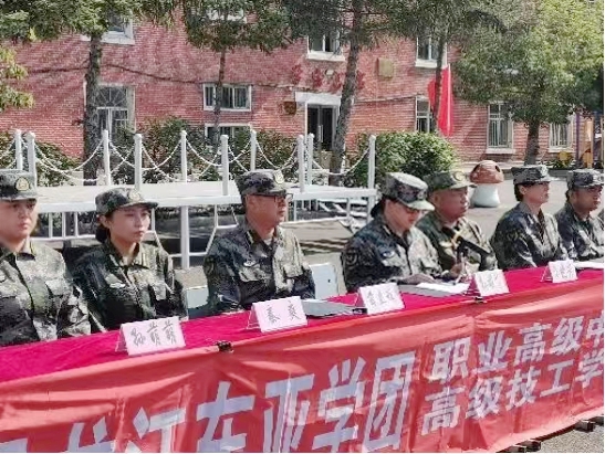 又讯 8月16日上午,东亚职业高中高级技工学校在学校操场召开2023级新生军训开营仪式。校党支部书记、常务副校长孙娱芯,副校长、综合办公室主任薛立峰,校长助理、教务处主任张丹,学生工作处主任陈占山、综合办公室主任助理秦爽、军训指导老师孙萌萌与军训教官参加开幕式,活动特邀beat365中文官网教官团指导老师孙晓芳参加,学生工作处吴彦海老师主持。