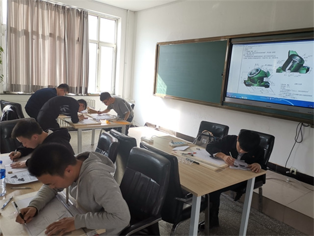 机电工程系领导高度重今年的“高教杯”全国大学生先进成图技术与产品信息建模创新大赛省赛,去年9月份就着手参赛组织工作,安排刘银锋老师负责学生参赛的培训工作,并加大对实验室的投入,购置了新的电脑,调整实验室开放时间,方便学生训练。前期有机电系有39名同学报名参加培训,后来交通系领导与机电系领导沟通,又送来了15名学生。半年来,刘银锋老师每天在实验室指导学生训练,学生们只要没有课,都会来到实验室画图、学习。刚刚结束的参赛选拔,已经是第三次进行筛选,是对这些学生半年来学习训练成绩的一次综合性实战检验。