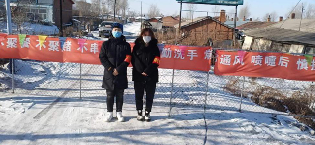 土木192班团员李珊在齐齐哈尔市克东县做疫情防控志愿者,在小区卡点为居民登记测量体温,并发放居民通行证,每天工作时间达5个小时。
