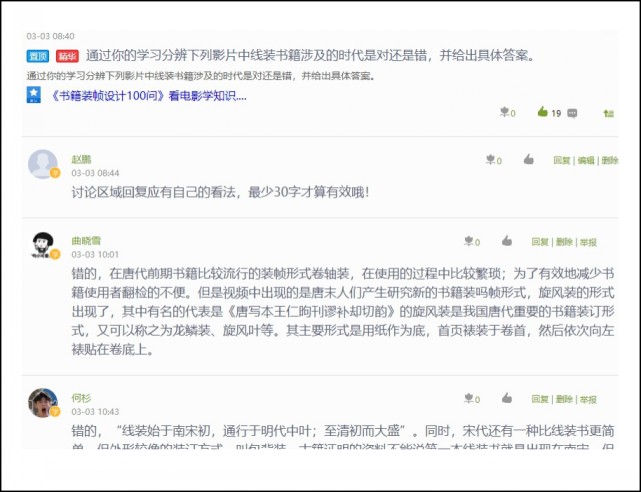 ——录制“手把手”式的实践教学操作步骤视频,提早让学生了解实践教学中教师所演示内容。我认为书籍装帧设计注重理论付诸实践,成果就是学生的书籍装帧作品。为确保本门课程理论与实践不脱节,保证学生返校后即可在短期内快速完成实践部分的任务,我对书籍装帧的操作过程进行了录制,编制成《书籍装帧设计100问》系列视频,放置在超星学习通资源区,努力将“工作过程”呈现给学生,使学生在不具备实践条件的线上学习中,能够掌握实践方法和施工流程,在一定程度上解决线上授课实践性弱的问题,进而达到学生回校能做、会做,又能做好的目的。