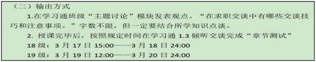 对于在线教学的输出成果,我给予了最大程度的关注。一是严把时间,在学习任务单中明确各项作业上交时间,过时不得补交。