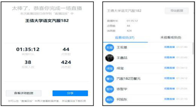 三是课后盯紧数据。课后,我将钉钉直播数据截图反馈给授课班级,督促学生关注自己的学习实况,及时纠错、相互督促。