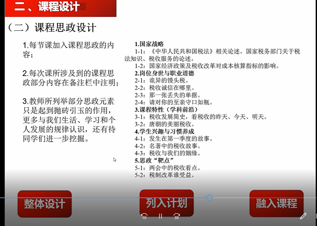 夏丹老师的《税法》课程分享,其特点是:课程设计紧紧围绕专业对应的职业和主要工作任务进行设计;课程实施中强化对学生“三个兴趣”的培养。