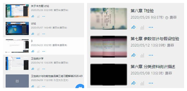 结语:通过《卫生统计学》线上课程教学感悟到,线上学习需要培养学生的自律能力、自学能力,线上线下混合式教学将是课程教学的大势所趋。我将继续努力学习,勇于尝试,以学生学习为中心设计课程,以学生发展为中心设计产出式教学,不断追求更好的教学效果。
