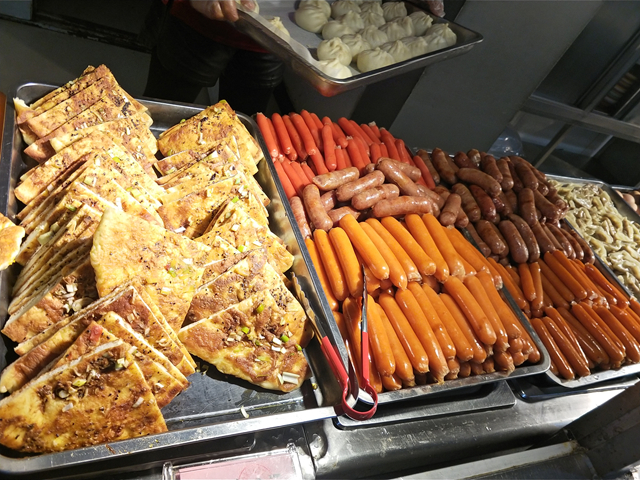 民族档口的孙先生,在这里经营已经四年多了。他说,他们提供多样化主食,炒面就有10多种,还有拌饭和饺子,又新增刀削面、肉炒面、蔬菜面等;原来使用70多元的面,现在改用116元和126元的了,为的是提高面食质量,增强口感,而售卖的价钱不变;他进的鸡肉、牛肉、香肠和各种丸等食材,都有食品质检报告。他补充说,对回民同学,他建立了群,给予百分之二十的优惠。