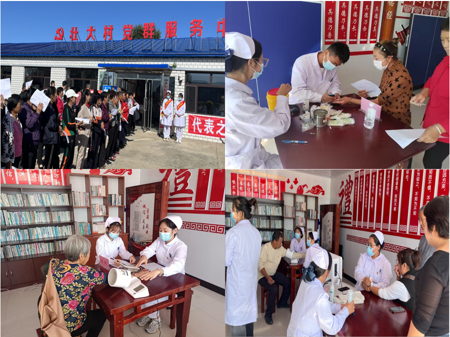 9月11日至12日,健康与护理系党总支、机关党总支13名师生党员与大庆德康医院医务人员组成义诊医疗团,深入到肇州县壮大村开展“健康服务进乡村,促进振兴助三农”系列志愿服务活动,把健康服务送到村民“家门口”,助力乡村振兴。