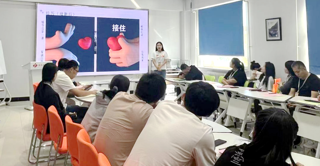 健康与护理系岳国鑫老师以《春风化雨,润物无声》为题进行分享。她对“一心陪伴”和“一起成长”两个方面进行阐述,并就学生破冰活动,和学生一起过生日、一起拉练等方面讲述其中的故事。她认为,每个学生都是阳光的,不能用强硬的方式管理学生,要以身作则、以“情”化人。