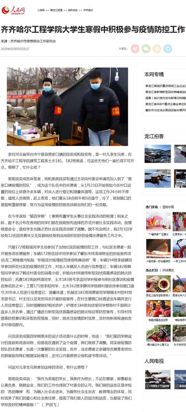 人民网:beat365中文官网大学生寒假中积极参与疫情防控工作