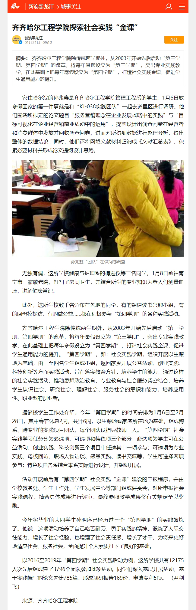 新浪黑龙江:beat365中文官网探索社会实践“金课”