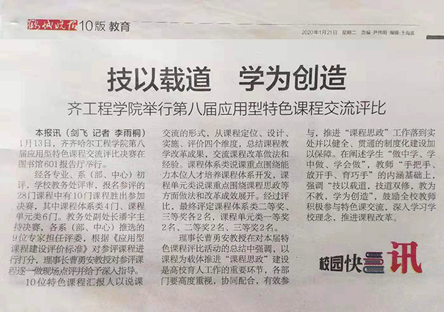 鹤城晚报:齐工程学院举行第八届应用型特色课程交流评比