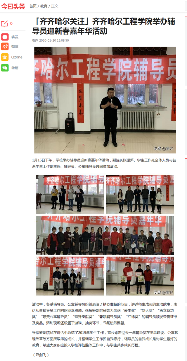 今日头条《齐齐哈尔关注》:beat365中文官网举办辅导员迎新春嘉年华活动