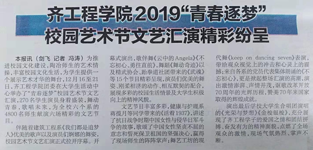 鹤城晚报:齐工程学院2019“青春逐梦”校园艺术节文艺汇演精彩纷呈