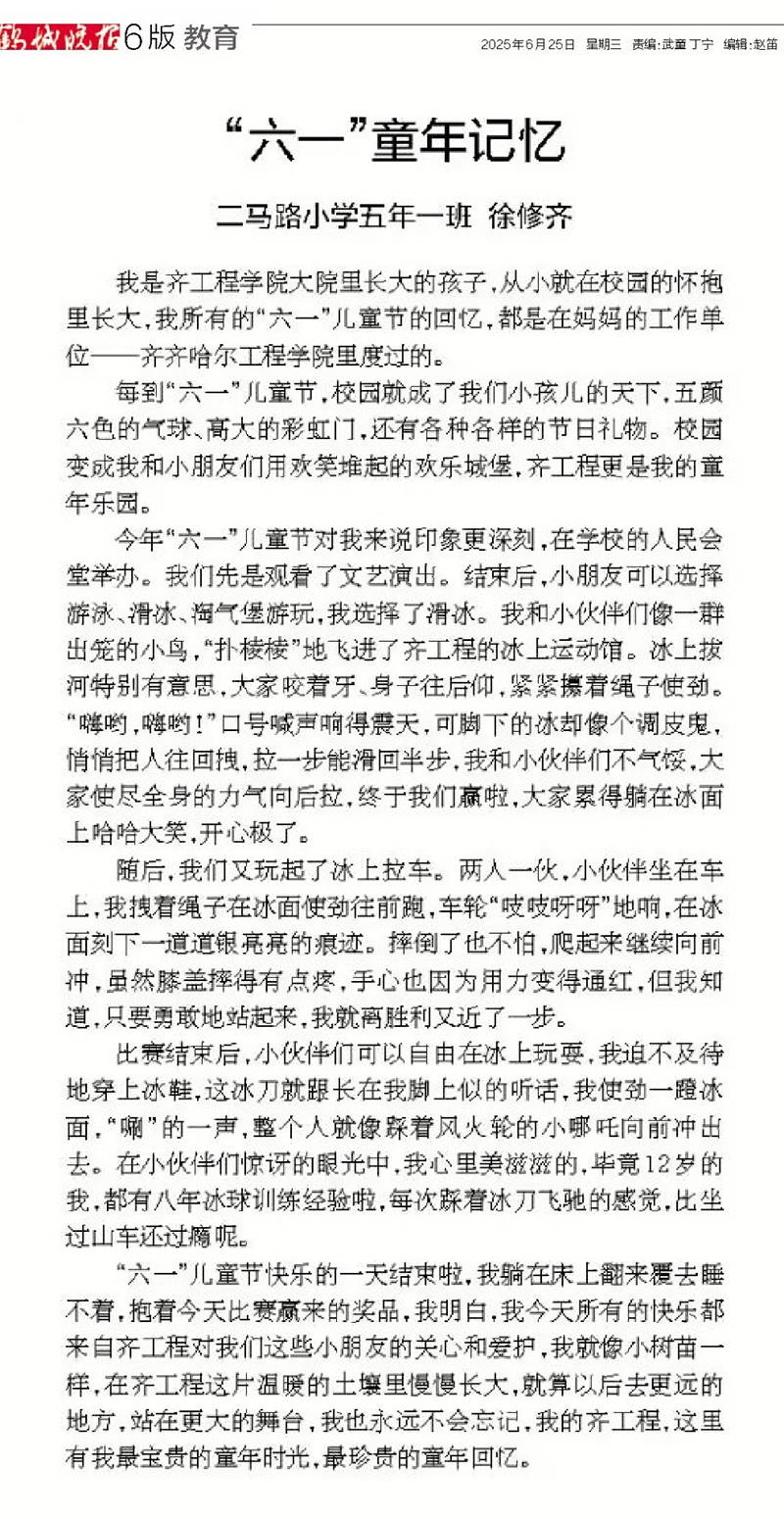 日期:2025-06-27 来源: 作者:二马路小学五年一班 徐修齐 浏览次数: