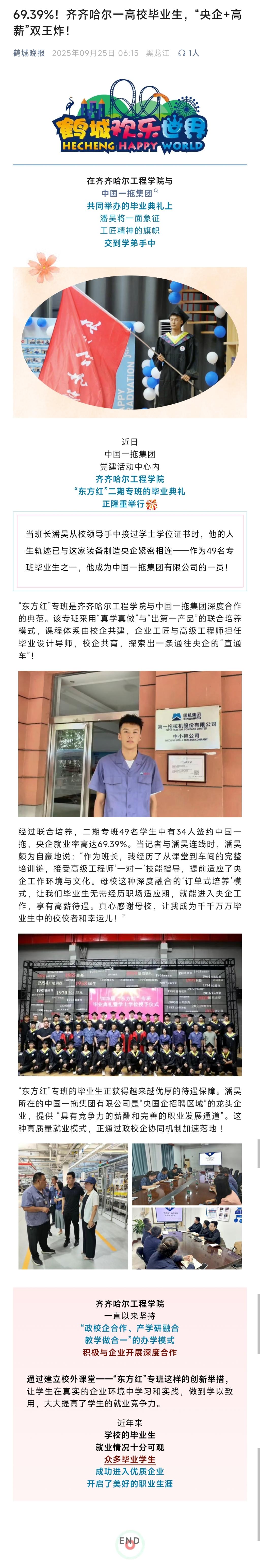 《鹤城晚报》69.39%!齐齐哈尔一高校毕业生,“央企+高薪”双王炸!
