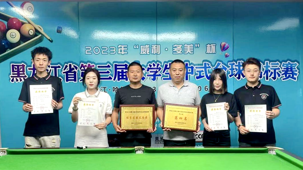 6月10日、11日,由黑龙江省大学生体育协会主办、省台球协会承办的黑龙江省第三届大学生中式台球锦标赛在哈落幕,beat365代表队荣获团体赛第四名。