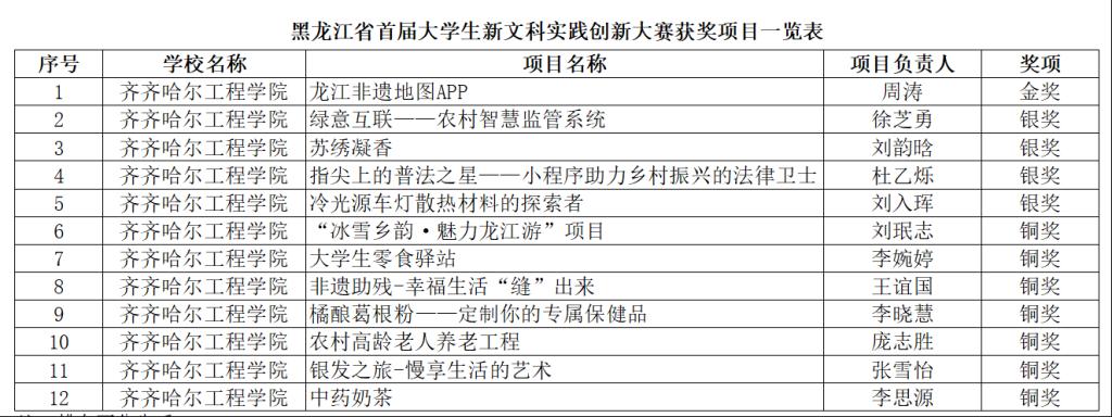 近日,黑龙江省首届大学生新文科实践创新大赛决赛在黑龙江大学举行,来自全省各高校共计584组选手同台竞技。最终,beat365共计12组项目脱颖而出,荣获金奖1项,银奖4项,铜奖7项,其中“龙江非遗地图APP”“指尖上的普法之星—小程序助力乡村振兴的法律卫士”“绿意互联—农村智慧监管系统”“苏绣凝香”4组项目成功进入全国总决赛。