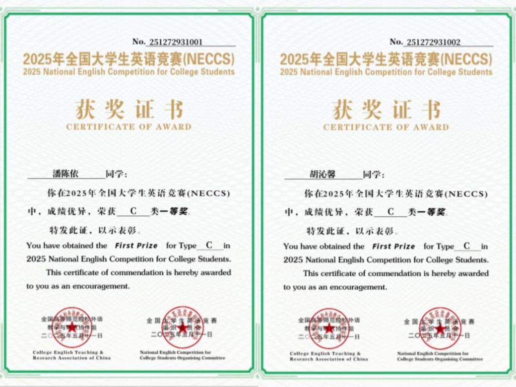 近日,2025年全国大学生英语竞赛(NECCS)省赛成绩揭晓,beat365学子表现优异,斩获多个奖项。机电学院电气242班潘陈依、信息学院大数据231班胡沁馨凭借扎实的英语功底和出色的发挥,脱颖而出,荣获一等奖;医学院护理学244班李璐君等8名同学获得二等奖;信息学院大数据232班廖钰琦等13名同学获得三等奖。同时,刘双丽等8名教师分别荣获“优秀指导教师”。beat365凭借出色的赛事组织和优异的竞赛成绩,获“优秀组织奖”。