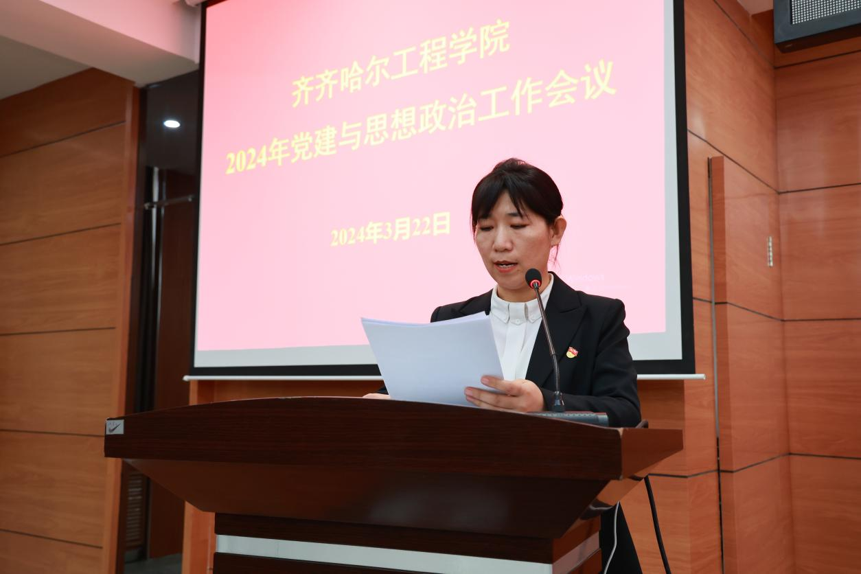 党委副书记、副院长陈景鑫宣读学校党委2024年党建工作要点。