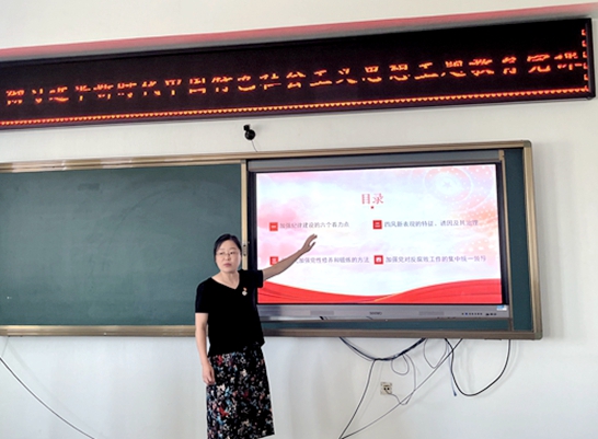 6月6日下午,教务长张静召集分管部门及机关第二党支部党员在图书馆608会议室召开学习贯彻习近平新时代中国特色社会主义思想主题教育专题党课报告会。张静教务长作题为《加强党风廉政建设》的专题报告,支部党员及分管部门教师代表参会。