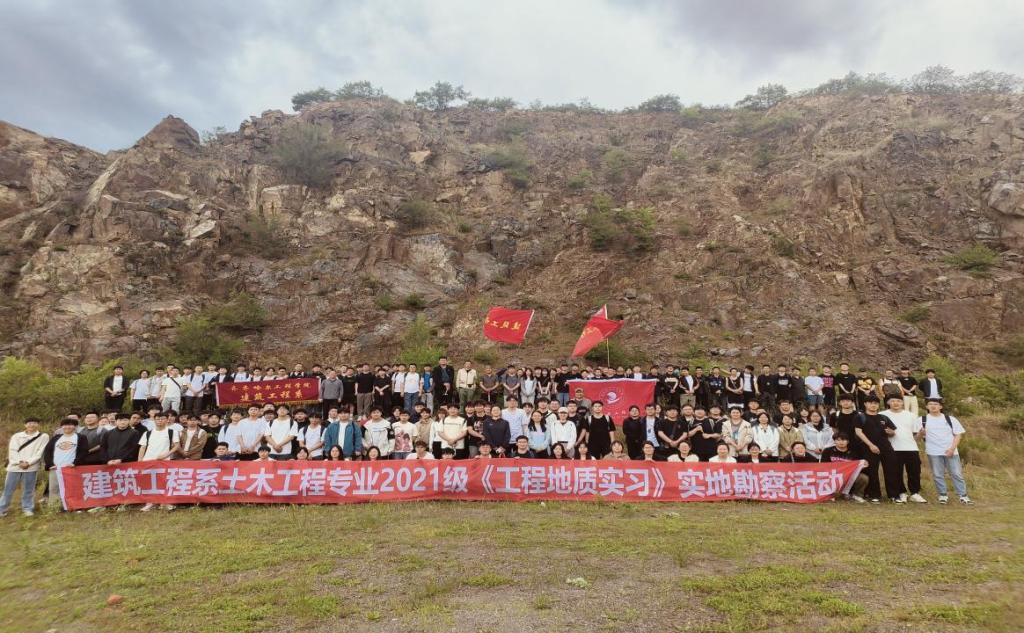 为将理论知识与实地操作相结合,学生能够更直观地了解工程地质的实际应用,近日,建筑工程系土木工程专业2021级全体同学全副“武装”,背起行囊,前往碾子山进行工程地质实习实地勘察活动。土木工程专业教师党支部和学生第一党支部联合组织,土木工程专业教师徐喜辉、梁忠强、薛欣华、杨平,辅导员于敦续、生涯导师张怡,学生第一党支部书记王雪等也参加了此次活动。