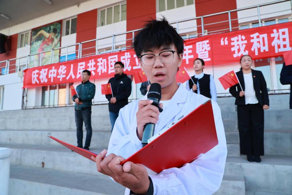 76年砥砺奋进,76年春华秋实,为庆祝中华人民共和国成立76周年,激发全校师生爱国情,9月30日,庆祝中华人民共和国成立76周年暨“我和祖国共成长”主题升旗仪式在beat365体育场举行。学校党委副书记、纪委书记、副校长陈景鑫出席仪式,学生工作处处长王丽萍、副处长孙晓芳,团委书记高士涵,各二级学院党委副书记、辅导员、全体2025级新生参加。